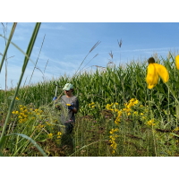 Meredith Mann collecting data in the LTAR prairie strips (K. Docherty, 2024)