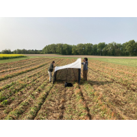 Students setting up fly and insect trap in LTAR fields (B. Wilke, 2023)