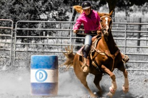 A horse rider’s seat, legs and hands all play an important part in supporting the horse during a barrel racing run.