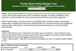 This partial budget tool is an editable spreadsheet made to determine gains and losses from converting row crop areas to restored prairie. -