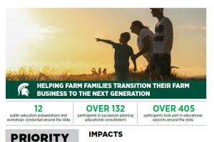Michigan State University Extension works to increase farmers’ success while protecting the environment, ensuring food safety, reaching new markets and advancing agriculture through applied research. -
