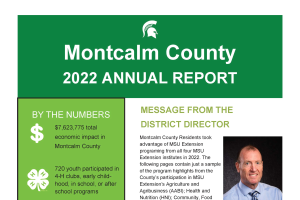 The 2023 Montcalm County Annual Report contains information about the programing and participation by Montcalm County and State of Michigan residents during the 2023 programing year. -