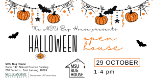 - The Bug House also participated in Darwin Discovery day at the MSU Museum (610 visitors), Bug Day in the 4-H Children’s Garden (120), SPOM Breslin Takeover (250), Halloween at the Broad Art Museum (500), Tollgate Fall Fair and Pumpkin Fest in Novi (1,200), and 3 local Elementary Science Fairs (450).