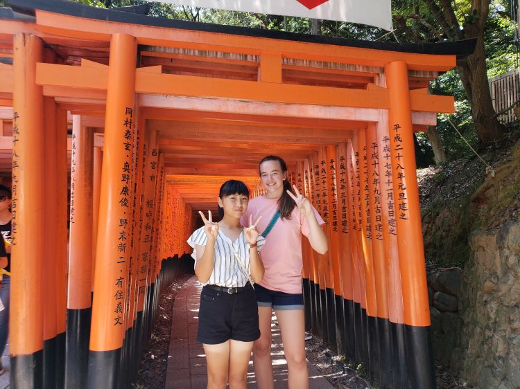 In mid-July, RyAnn departed for her four-week Japan excursion, and her international exchange experience came full circle as she spent two weeks with each of the young women whom she and her family hosted in previous years. During her stay, RyAnn visited famous sites such as Fushimi Inari-taisha, a shrine for the god of rice, and Byōdō-in, a temple built by the once powerful ruler Fujiwara no Michinaga. In addition to seeing Buddhist temples, Shinto shrines and partaking in traditional dining, RyAnn also enjoyed native experiences such as having her hair and makeup done in the traditional Japanese style.