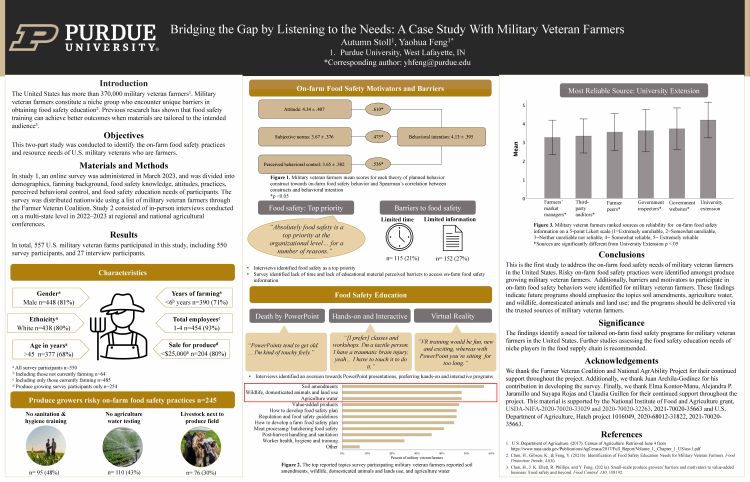 This two-part study was conducted to identify the on-farm food safety practices and resource needs of U.S. military veterans who are farmers.