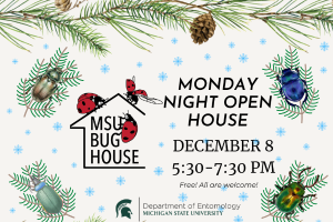 The MSU Bug House held its Holiday Open House on Sunday, Dec. 27, 2015, where over 230 visitors interacted with the live and displayed insects and stopped by for educational activities in the classroom next door.