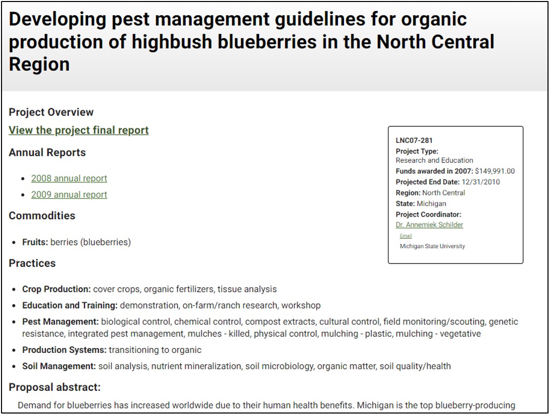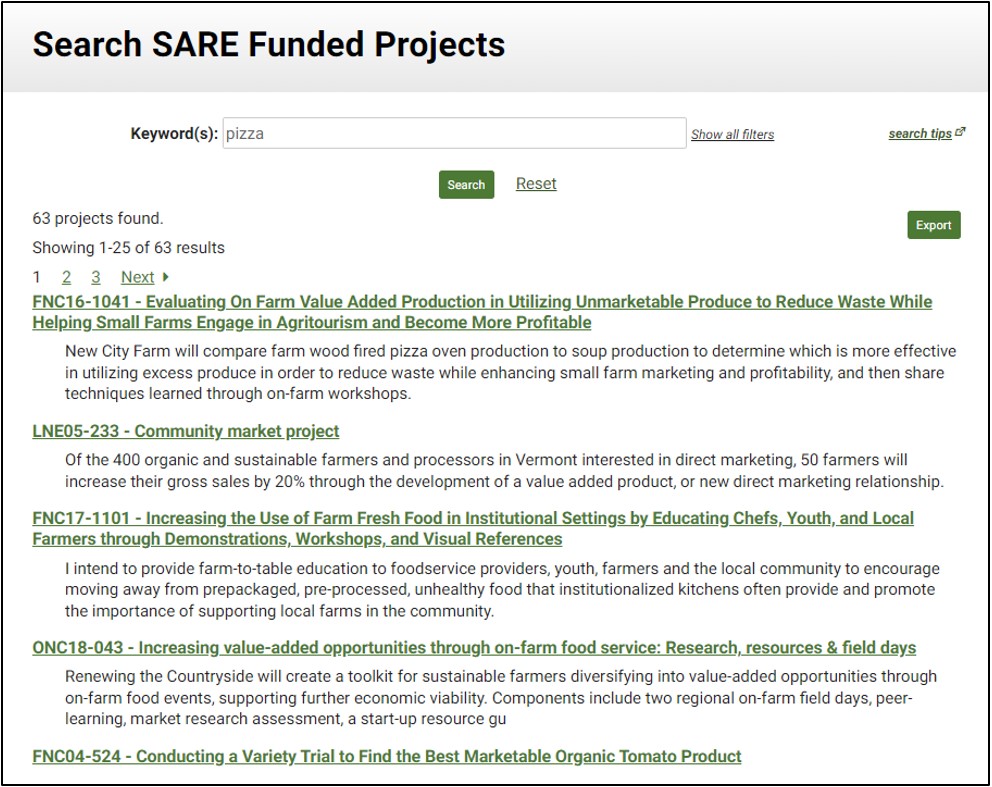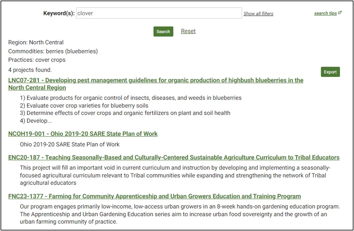 Searching through projects funded by Sustainable Agriculture Research and Education Program (SARE) grants is simple and allows you to see ideas and results directly from sustainable farm innovators. Examples of grants that have been funded by SARE can help you to write a successful SARE grant and improve sustainability on your farm.