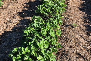 Strawberry leaf regrowth is well along in renovated fields. Growers with dry soils are irrigating both renovated fields and new plantings. Leaves on newly planted strawberries continue to emerge from the crown, along with runners that are rooting. Rows are filling out well in some fields where soil moisture has been adequate. Potato leafhopper leaf cupping damage is common in newly planted strawberries.