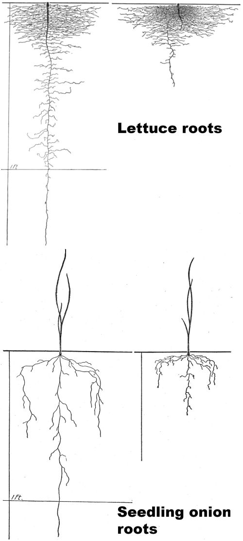 Weaver and Bruner published an amazing book in 1927, “The Root Development of Vegetable Crops,” with line drawings in 1-foot by 1-foot grids. These drawings clearly show how far some of our vegetable crops really reach. This year, deeper roots stopped at the high water table, and so plants are now relying on those shallower side-ways growing roots, which will be prone to drying out and cultivator blight. I am already seeing “flash drought” symptoms in field corn with the classic pineapple-like leaves in fields with obvious flood damage, and a pumpkin grower in the region reported wilting from root damage after cultivating. Strange year.