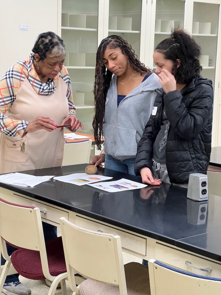 Linda Hanson, who leads the Sugar Beet and Bean Research Lab, prepared an activity she calls “Plant Disease Detectives” in which students examined potatoes and onions for common pathogens and discussed why they are problematic. After a brief introduction, students got busy trying to identify the nature of certain spots on produce they might find in the grocery store.