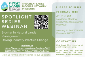 More information on the Economics of Biochar Production and Use will be presented in a webinar with Raju Pokharel from the department of forestry, Thursday, Dec. 9 at 2 p.m. EST. This event is offered by the Great Lakes Biochar Network (GLBN), which is a newly formed initiative by Michigan State University Extension that will provide nonbiased, research-based information for practitioners of all levels and scales.