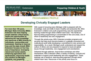 The World Food Prize Michigan Youth Institute is an annual Michigan State University pre-college program that is coordinated by Michigan 4-H with support from the MSU College of Agriculture and Natural Resources, Michigan 4-H Foundation, MSU International Studies and Programs, Michigan State University Extension and the World Food Prize Foundation. MSU and the World Food Prize Foundation provide funding to cover all expenses, including transportation, lodging and meals for Michigan’s youth delegates who participate in the World Food Prize GYI.