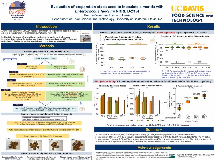 Evaluation of preparation steps used to inoculate almonds with Enterococcus faecium NRRL B-2354