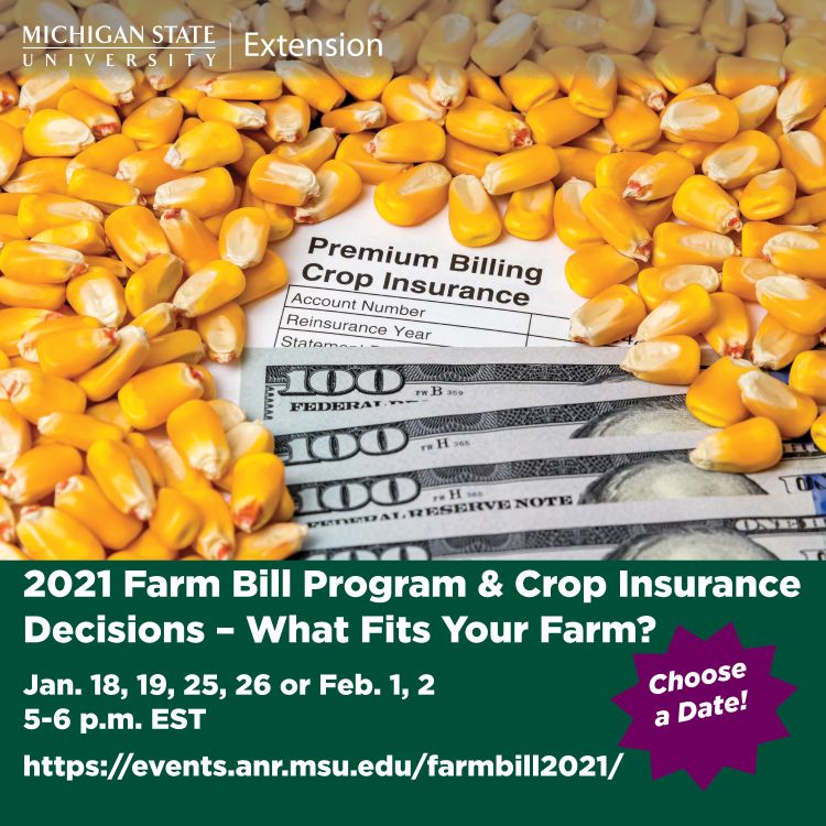 The “2021 Farm Bill Program & Crop Insurance Decisions – What Fits Your Farm?” series is a joint effort by Michigan State University Extension and Michigan Farm Bureau to help guide producers through these considerations and make the best choice for their farms.