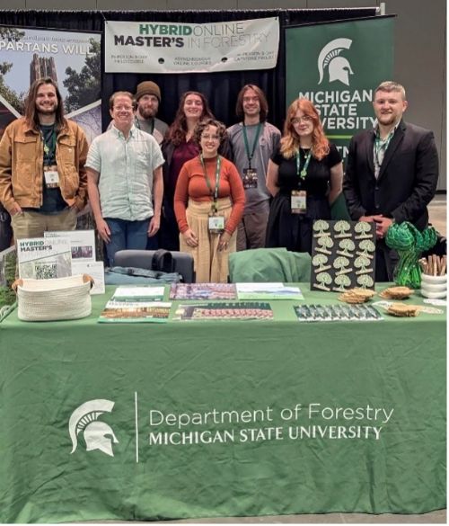 At the convention, FCCP also had the opportunity to reconnect with project partners, colleagues, and the broader Michigan State Forestry community through meetings, policy sessions, social events, and a Michigan State Forestry alumni reception. Furthermore, the MSU Department of Forestry and the Institute for Agriculture Technology (IAT) had a table at the exhibitor hall to promote broader education resources, including FCCP graduate certificate in forest carbon science, policy, and management, FCCP professional courses, FCCP Open Resource Library (ORL), and the department of forestry’s hybrid master’s degree.