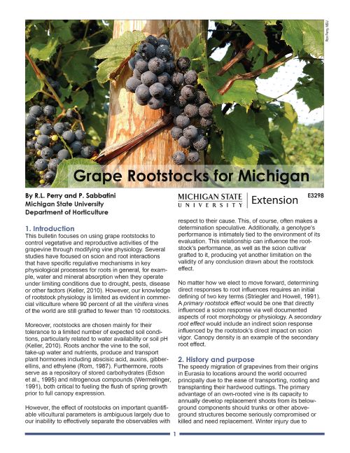 For a print copy of the bulletin, purchase publication E3298, “Grape Rootstocks for Michigan,” at the MSU Extension Bookstore. A free PDF and additional content can be downloaded at the Growing Grapes for Juice and Wine website.