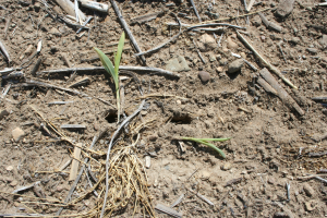 Sandhill crane populations have been on the rise in the Great Lakes region, increasing 1.5–4.4 percent annually according to the Michigan’s Department of Natural Resources 2017 resource, “Sandhill Crane Status in Michigan.” Sandhill cranes impact corn and wheat production shortly after young plants emerge from the soil. The birds will commonly use their beaks to penetrate the ground at the base of seedlings and pull up the seed to eat it, leaving the seedling behind. They will often walk down corn rows, depopulating the stand, until the seeds no longer have starch reserves—typically about three weeks after emergence. As with deer damage, this feeding behavior can have an especially negative impact on seed and foundation corn production.