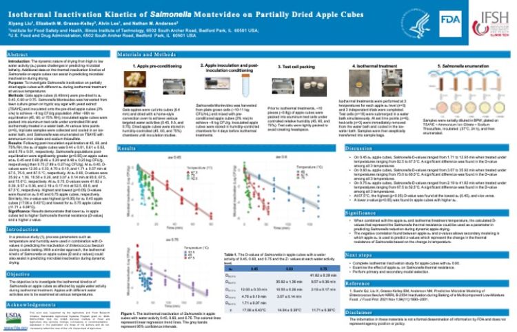 To investigate Salmonella inactivation on partially dried apple cubes with different aw during isothermal treatment at various temperatures.