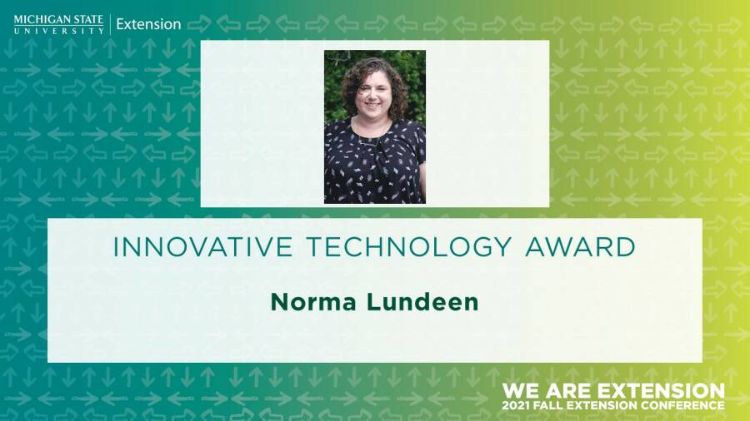 Norma Lundeen received the MSU Extension Innovative Technology Award for her partnership with the SNAP Program during the annual Fall Extension Conference held virtually on Sept. 28.