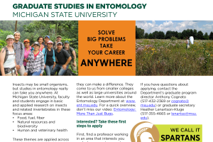 Application: Students will be required to formally apply to the Michigan State University Graduate School (contact Mackenzie Graham, graham2@msu.edu). In addition to formal application, send a copy of CV including research and extension experiences, research statement, GRE and TOEFL (if required) scores, and academic transcripts to the contact person below.