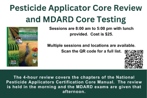 MSU Extension, PSEP and MDARD are providing 25 sessions scheduled throughout the state between December 2024 and May 2025. It is important to note that participants must attend the core review if they plan to take the test in-person. A complete list of available sessions, along with registration and additional information, can be found at MDARD In-Person Core Testing and Core Review.