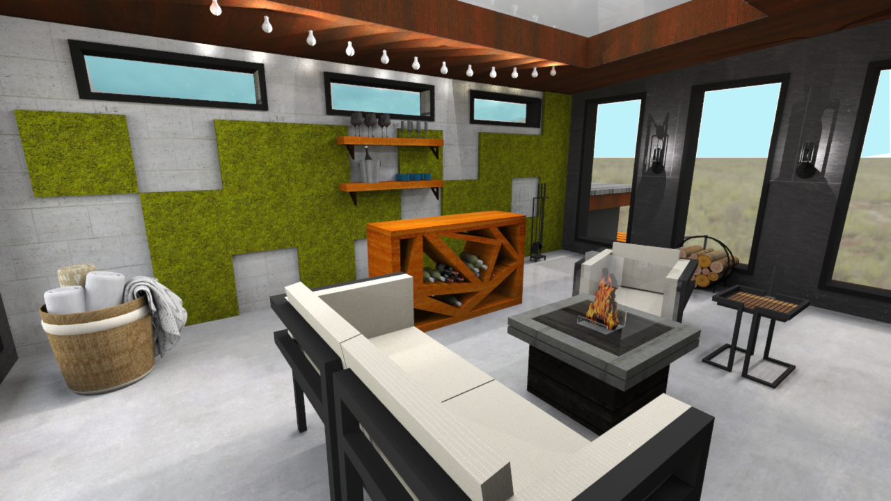 Castle Rock Cabin will blur the line between indoors and outdoors by borrowing characteristics from the captivating style of inverted interior design. The use of exterior features and raw elements will be utilized throughout the interior to make the outdoors feel contiguous with the indoor space. The feeling of transitioning between two separate spaces will be lifted from visitors as they enter the home. Yet the sheltering comfort that four walls and a roof provide will still remain. The remote location of the Redwood Forest in California will inspire a modern cabin style for the home. Inverted design features will include: Indoor spaces inspired by outdoor living, material and furniture selections inspired by the adjacent natural environment, and the integration of wildlife.