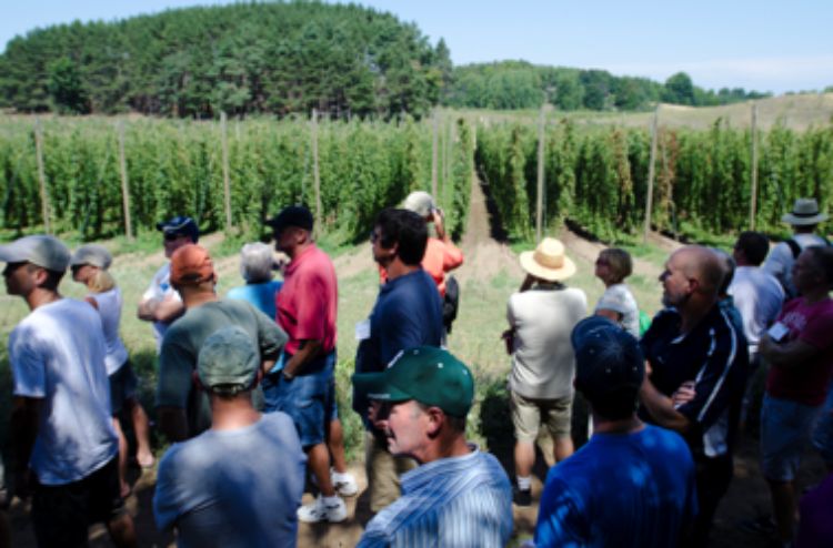 Michigan State University Extension and partners will be hosting the 9th annual hop field day and tour on Friday, July 29 from 8 a.m. – 5 p.m. The tour is designed for both beginning and advanced hop growers as well as those interested in learning more about hop production and craft beer. Participants will park at Incredible Mo’s in Grawn, Mi and travel by tour bus to young and established hop yards in Manistee and Leelanau Counties and Stormcloud Brewing Company in beautiful Frankfort, MI. Local growers will be on hand to talk about all aspects of hop production: initial costs, plant care, disease & insect management, trellis construction, quality control, propagation, organic & conventional growing practices, and picking and processing. The tour will visit Midwest Organic Hops (Leonard Olson Farm), as well as Big Daddy Hops. The group will end the day with an educational tasting conducted by the Michigan Brewers Guild at Empire Hops Farm and return by tour bus to Incredible Mo’s.