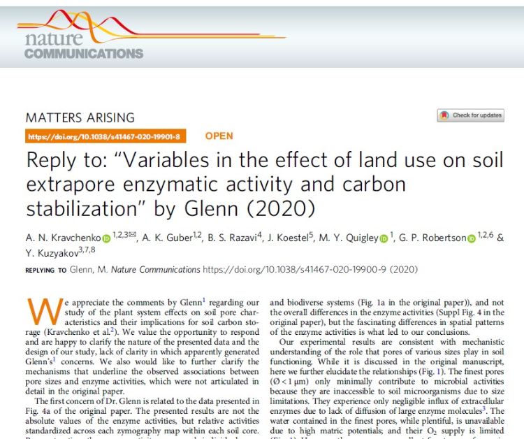 Nature Communications published our response to critique of Kravchenko et al. 2019 paper