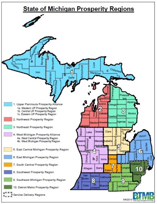 For Michigan, development of regional approaches for economic development is extremely important at this time. In today’s new economy, regions are the economic units capable of being competitive in a global economic setting. That is one of the ideas behind Michigan’s Prosperity Regions. Each region is created only as large as necessary so each region has all of the assets necessary to be globally competitive. Then there needs to be a system of coordination, cooperation, and planning so the region can champion economic development efforts for the entire region.