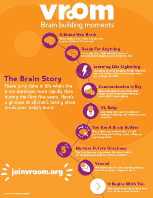 Vroom is based on the latest research in early childhood and brain development. It was created by experts in a variety of fields such as neuroscience, psychology, parenting and early childhood development and many more unique fields. These experts worked with local communities and families to create easy-to-use activities in everyday interactions with children that increase those positive brain connections.