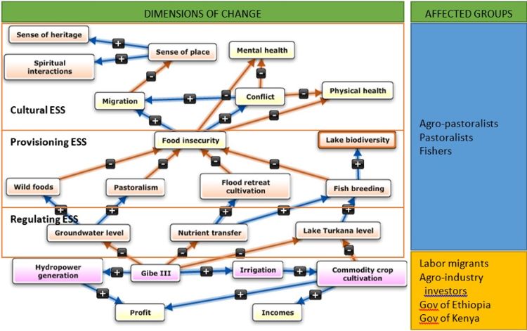 To recapitulate, the clearest ‘winners’ at this stage are labor migrants, and the clearest ‘losers’ indigenous peoples. The other major actors—agro-industry investors, and the governments of Ethiopia and Kenya—are in an equivocal position, with potential for large gains, but also exposure to substantial risks. Important SES-wide impacts will result from changes in regulating, provisioning, and cultural ecosystems services, including potential environmental degradation; loss of biological and cultural diversity; heightened competition and conflict over natural resources; and the potential for increased dependence on food aid. There are, however, some ways of mitigating the costs of the Basin developments.