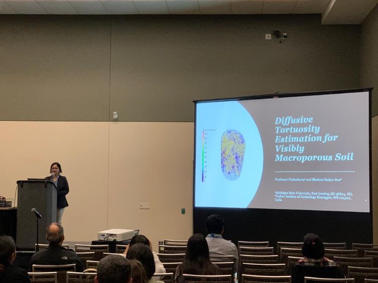 Dr. Poulamee Chakraborty from Kravchenko Lab, Michigan State University along with her colleague Dr. Navdeep Singh from Washington State University organized an interesting session for the ASA CSA SSSA International Annual Meeting, 2022. The two- and half-hour session discussed how soil physics plays an eminent role in dictating the present and future of soil health. The session attracted six speakers from all over the world to discuss their experiments and observations that helped them to understand the underlying soil physical processes in soil Carbon sequestration and soil microbial abundance. The key message of the session was “We should build our soil so good that the microbes would love staying and flourishing in it”.