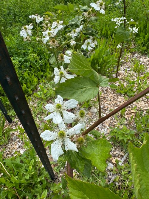 We are seeing bloom in summer raspberries and blackberries with some fruit set in blackberries. Fall raspberry shoots have elongated to about 18 inches in Hartland. Wild black raspberry bloom has started.