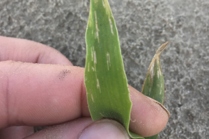 Western bean cutworm eggs are laid in masses the size of a dime on the upper side of the leaf and are concentrated in the top third of the plant, which in my experience makes eggs easy to see when walking through fields. The larvae are typically controlled by a corn earworm spray program, but last year I heard many reports of damage that sounded like this pest (moldy ears with a hole bored through the husk, ears with multiple caterpillars), so scouting now is warranted.