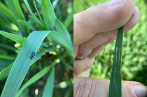 Winter wheat heads have ended pollination and are beginning their grain filling stage. Minor foliar disease and insect pressure are present in most fields, and many have gotten T3 fungicide applications out. The June 5, 2025, Field Crops Virtual Breakfast Series session discusses more about fungicide decisions to protect the flag leaf after pollination, which is when significant losses can occur. If injury to wheat’s flag leaf occurs late in grain fill, losses are minimal as the plant can redirect sugars from other green parts like the spike and stems.