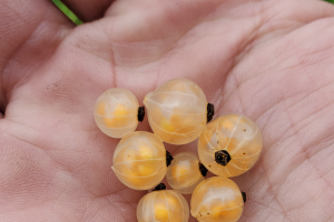 Gooseberries are continuing to green up. Fruits are up to 10 millimeters in size.
