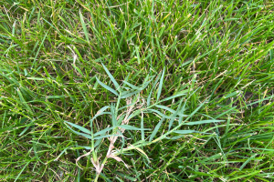 Annual bluegrass (Poa annua) is a common clump-forming grass weed. Leaves are folded and smaller than many of our regular turfgrass species, sometimes appearing as a lighter shade of green. Flowers appear as a panicle, often below mowing height.