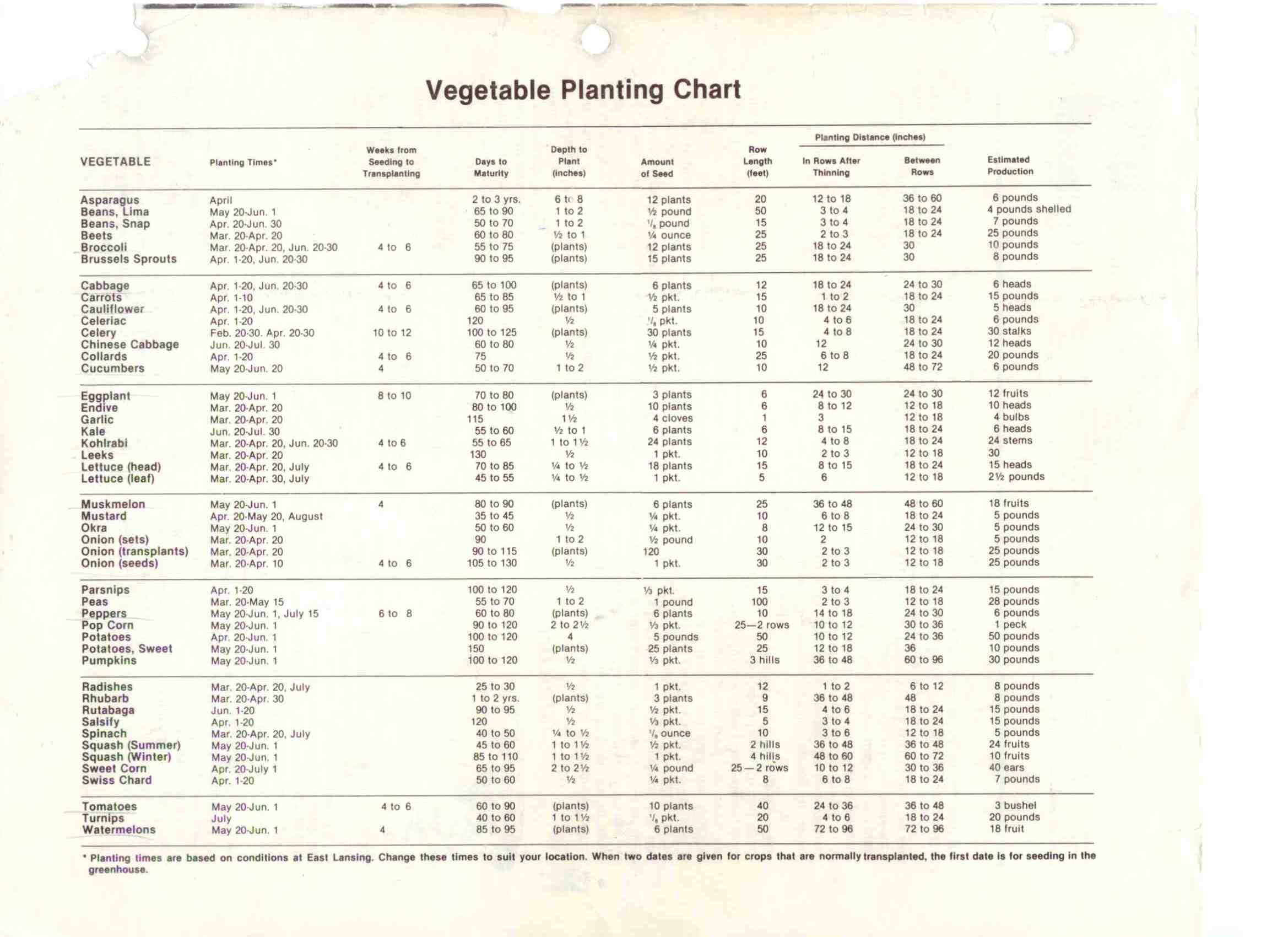 - Vegetable Planting Chart