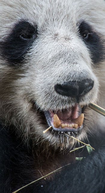 Panda’s diet is 99 percent bamboo – its most readily available food source. But bamboo isn’t highly nutritious, so they need to eat a lot of it – some 20 to 30 pounds a day.