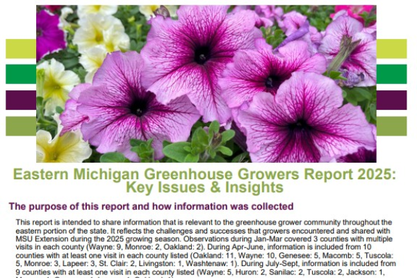 Caitlin Splawski is a greenhouse and floriculture extension educator based in Oakland County. She serves greenhouses and nurseries in eastern Michigan. She has a B.A. in Biology and Environmental Studies from Denison University, and an M.S. in Horticulture and Crop Science from the Ohio State University. She brings expertise in greenhouse management, herbaceous perennial production, and container trialing. Her major program interests include: cultivar selection, integrated pest management in greenhouses, pesticide safety and pollinator protection, and marketing of ornamental plants.