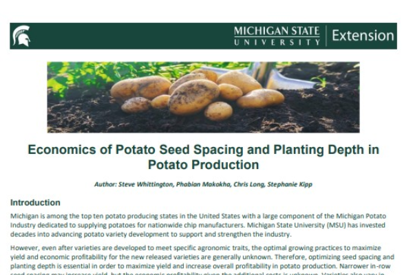 Economics of Potato Seed Spacing and Planting Depth in Potato Production
