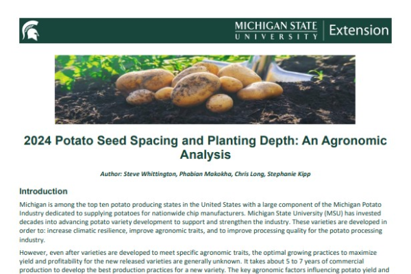 2024 Potato Seed Spacing and Planting Depth: An Agronomic Analysis
