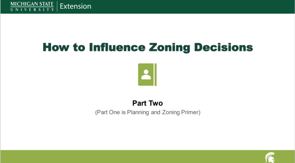 Gmazel is a co-author of the recent award-winning policy guidebook ‘Solar Development Regulation for Local Governments’- a partnership between MSUE and University of Michigan. The Guidebook offers planners and officials with sample policy and regulations for large and small solar energy developments. Starting in 2018, Gmazel served on the teaching team for a series of solar regulation webinars across southern and mid-Michigan, providing policy and regulatory guidance to officials at the township, city and county level.