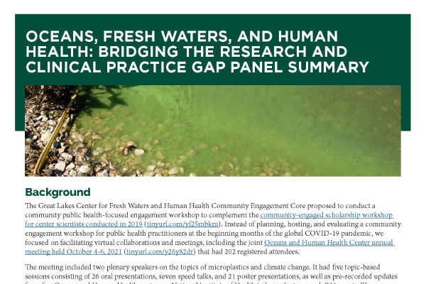 Oceans, Fresh Waters, and Human Health: Bridging the Research and Clinical Practice Gap Panel Summary