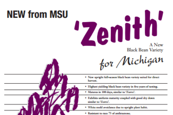 34. Kelly, J.D., G.V. Varner, K.A. Cichy, and E.M. Wright. 2015. Registration of ‘Zenith’ black bean. J. Plant Registrations 9:15-20. doi:10.3198/jpr2014.05.0035crc.