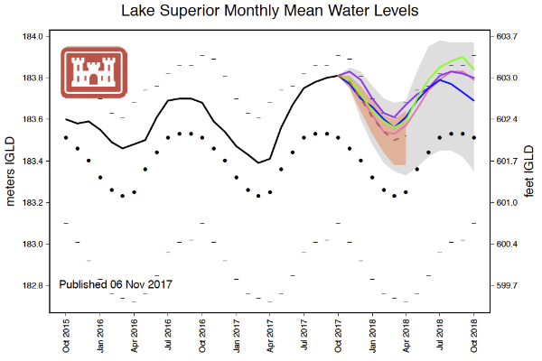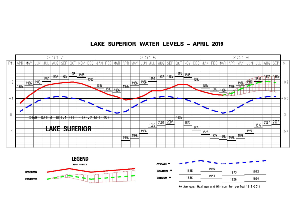 Lake Superior water levels predicted to break monthly record highs in June/July 2019