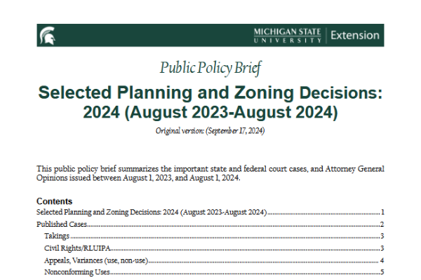 Selected Planning and Zoning Decisions: 2024 (August 2023-August 2024)