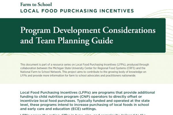 Farm to School Local Food Purchasing Incentives: Program Administration