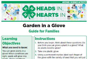 In this activity, you will grow a garden in a glove and be introduced to the plant growing cycle. You will become familiar with the components plants need to grow: air, water, warmth, sun and soil. -