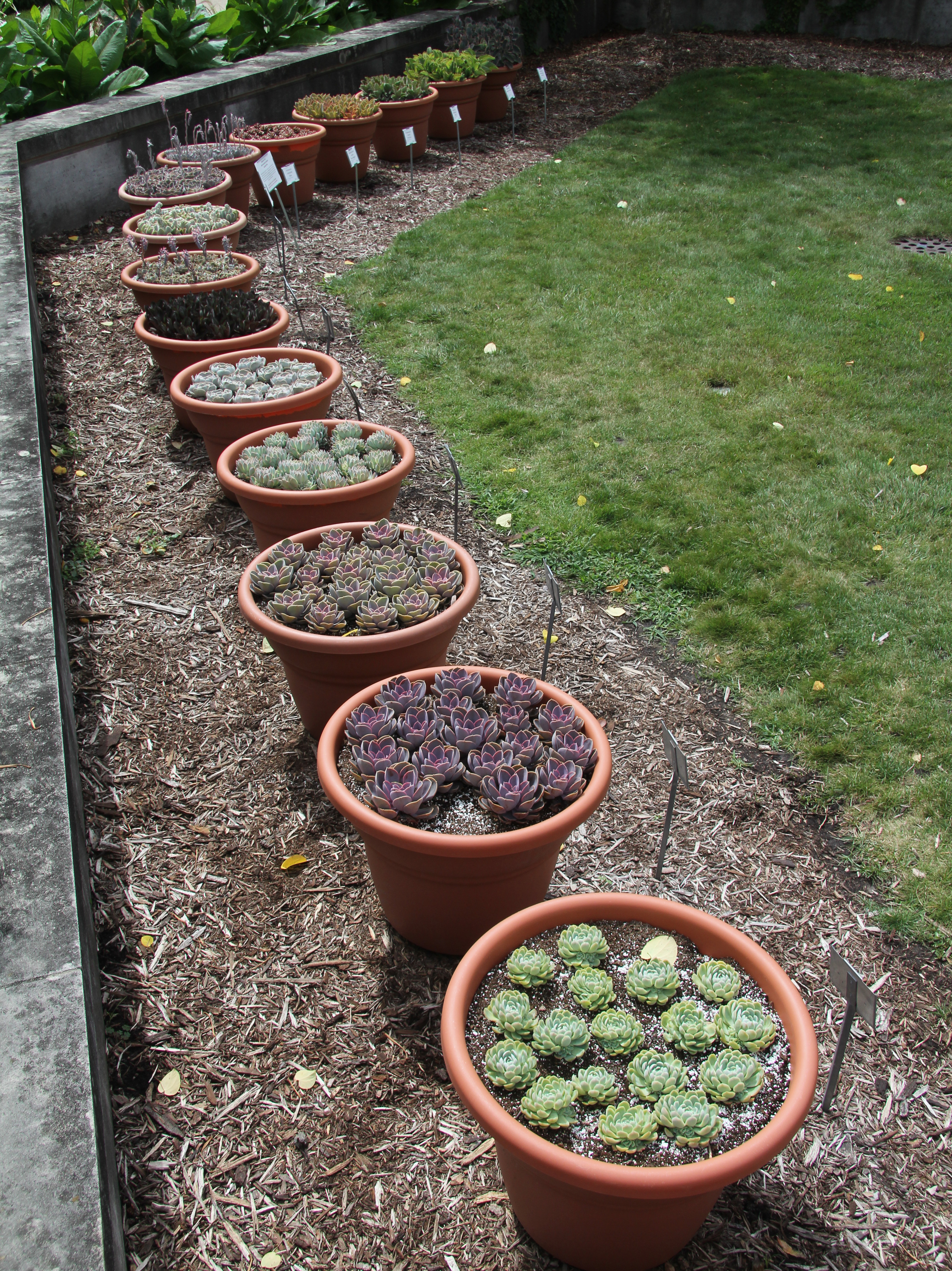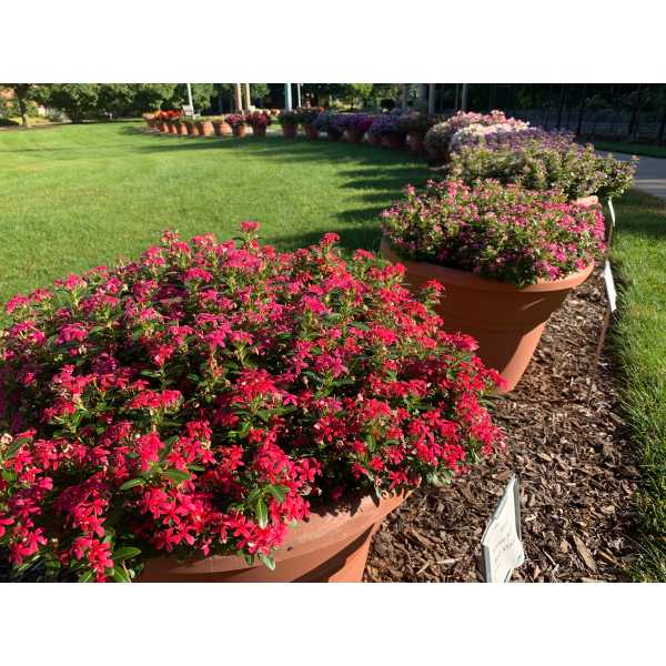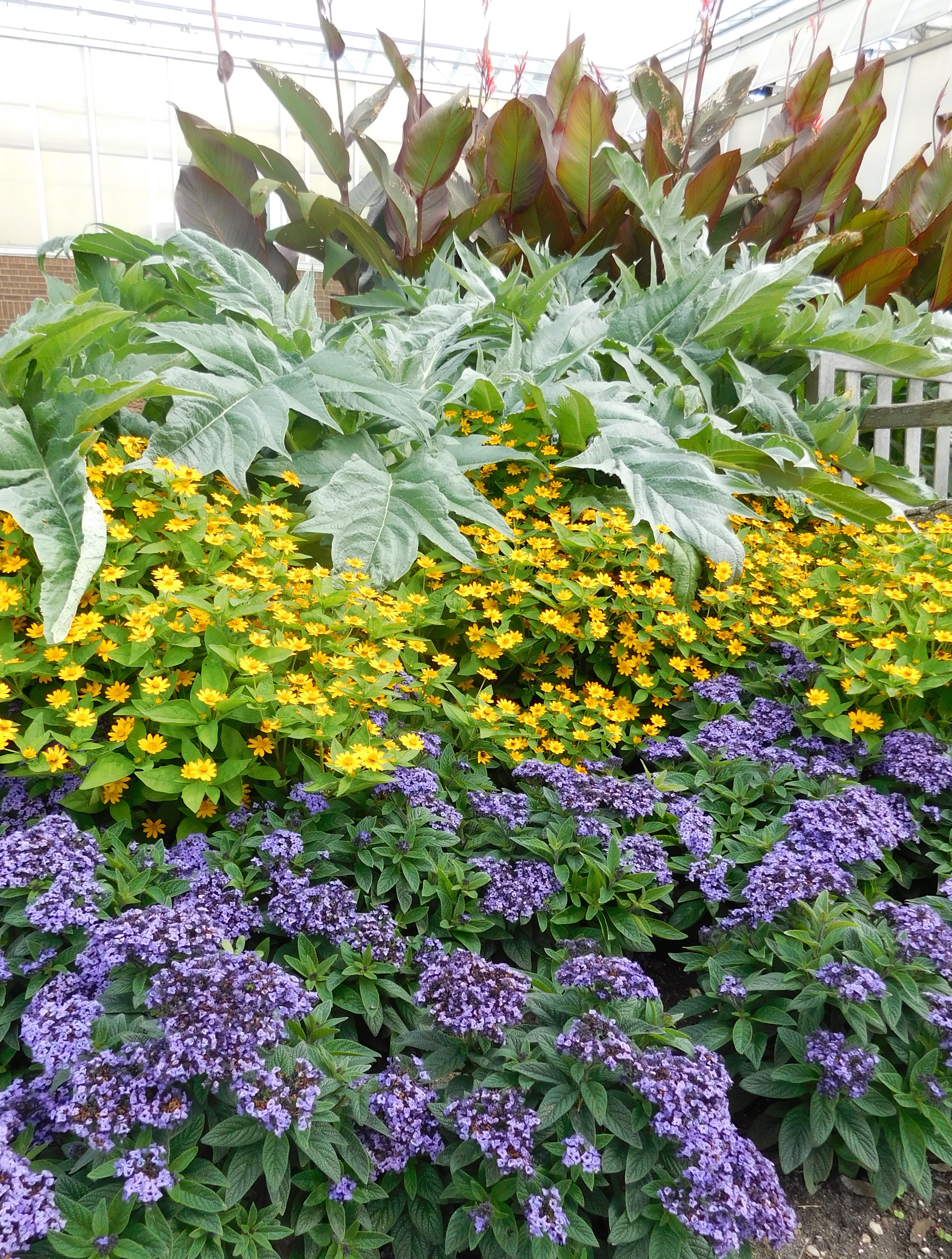 In addition to the trial beds, about half of the annual garden beds are planted as displays for enjoyment by our many wedding ceremonies and receptions, and by the general public. Our garden also features several beds and containers designed by student interns. These students get to select their plant material, then design, install, and maintain their creation all season.